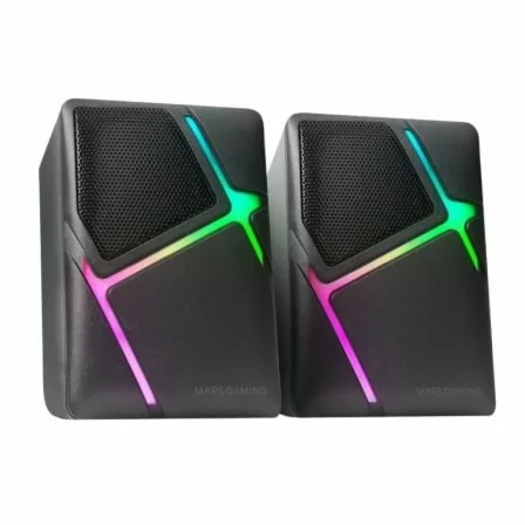 Entra en una dimensión donde cada beat ilumina tu espacio de juego. ‘Los altavoces compactos MS-H son un espectáculo de luces RGB Flow que ‘acompañan tus victorias y tus mejores playlists. Prepara tus sentidos ‘para una experiencia gaming donde la música y la iluminación se fusionan’ creando un ambiente mágico.”
