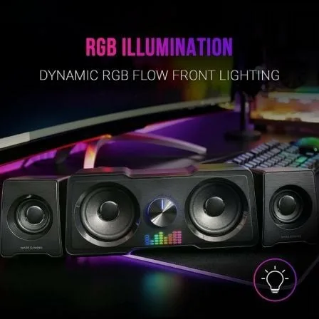 Potencia y calidad de sonido con el sistema 2.2 más innovador. Potencia de 35W con DSP digital, subwoofer dual, control directo de volumen e iluminación de flujo RGB. El sistema de sonido MS22, especialmente diseñado para un rendimiento de bajos potente y tonos medios nítidos, revoluciona su configuración con una apariencia espectacular y la mejor tecnología de sonido.