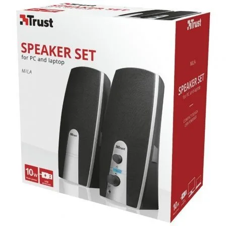 - Compacto juego de altavoces estéreo con potencia de salida RMS de 5 Vatios (máx. potencia: 10 vatios)