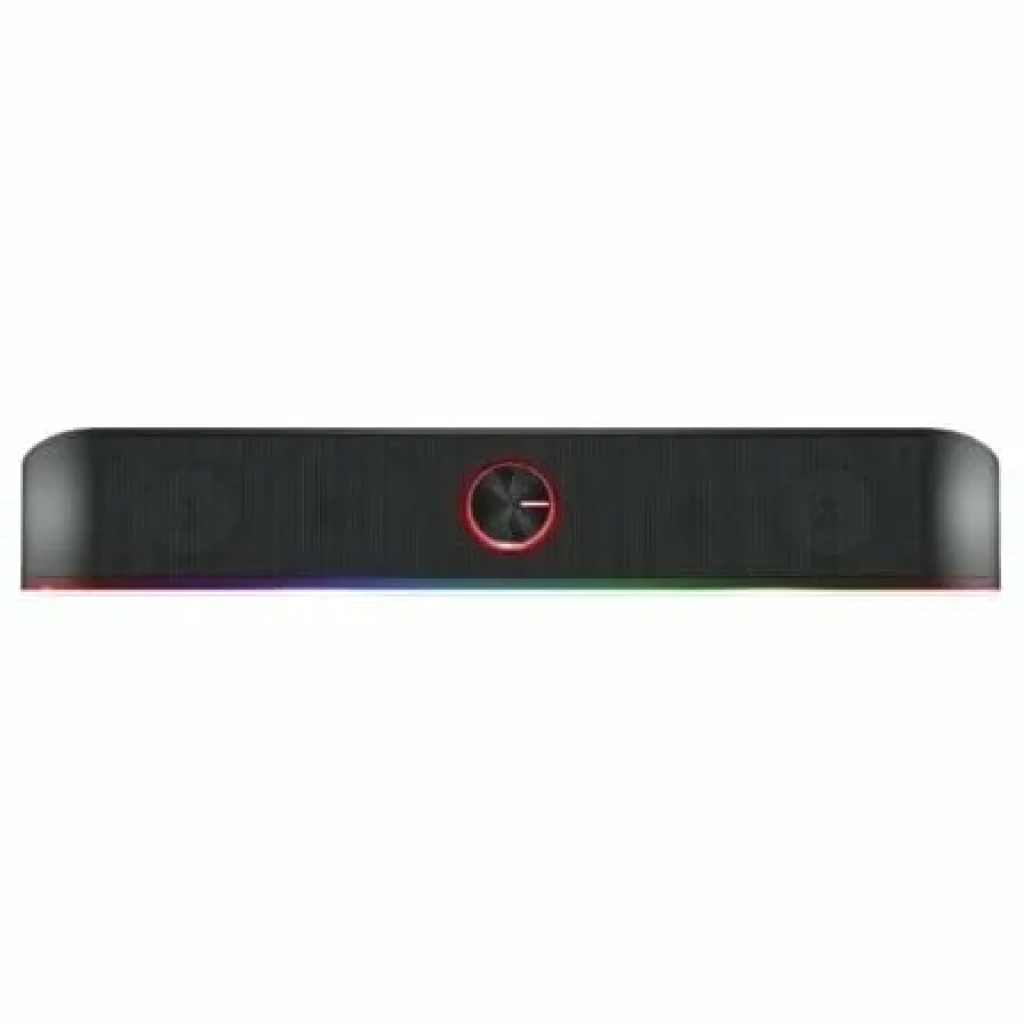 ‘Los altavoces estéreo no tienen por qué ocupar espacio útil del ‘escritorio. La barra de sonido GXT 619 Thorne de Trust para gaming se ‘presenta en un factor de forma reducido. El sonido estéreo nítido con 12′ W de potencia máxima y la iluminación RGB hacen de esta barra de sonido’ la solución perfecta para todos los gamers que desean ahorrar espacio ‘sin sacrificar una buena experiencia de gaming.