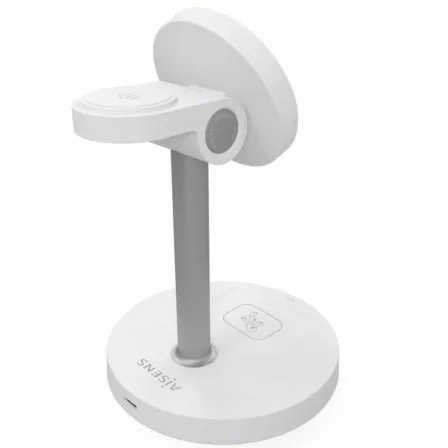 AISENS® – Cargador inalámbrico USB-C 3 en 1 de 15W para Móvil, Apple Watch, Auriculares con Estuche de Carga, Blanco