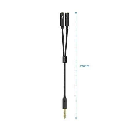 - Cable adaptador audio Jack 3.5mm macho de 4 pines en un extremo y 2 jack de 3.5mm hembra de 3 pines en el otro