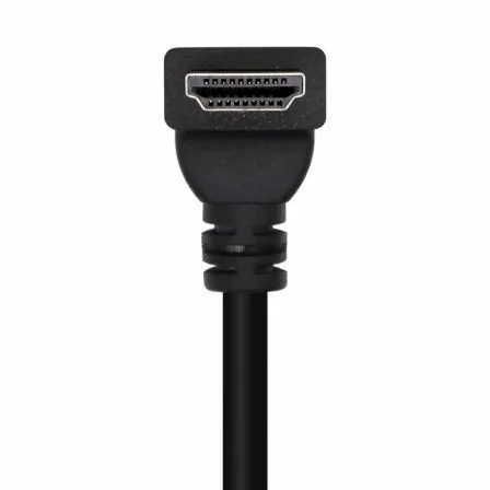 - Cable HDMI V2.0 premium alta velocidad con Ethernet con conector tipo A macho acodado en un extremo y conector tipo A macho en el otro