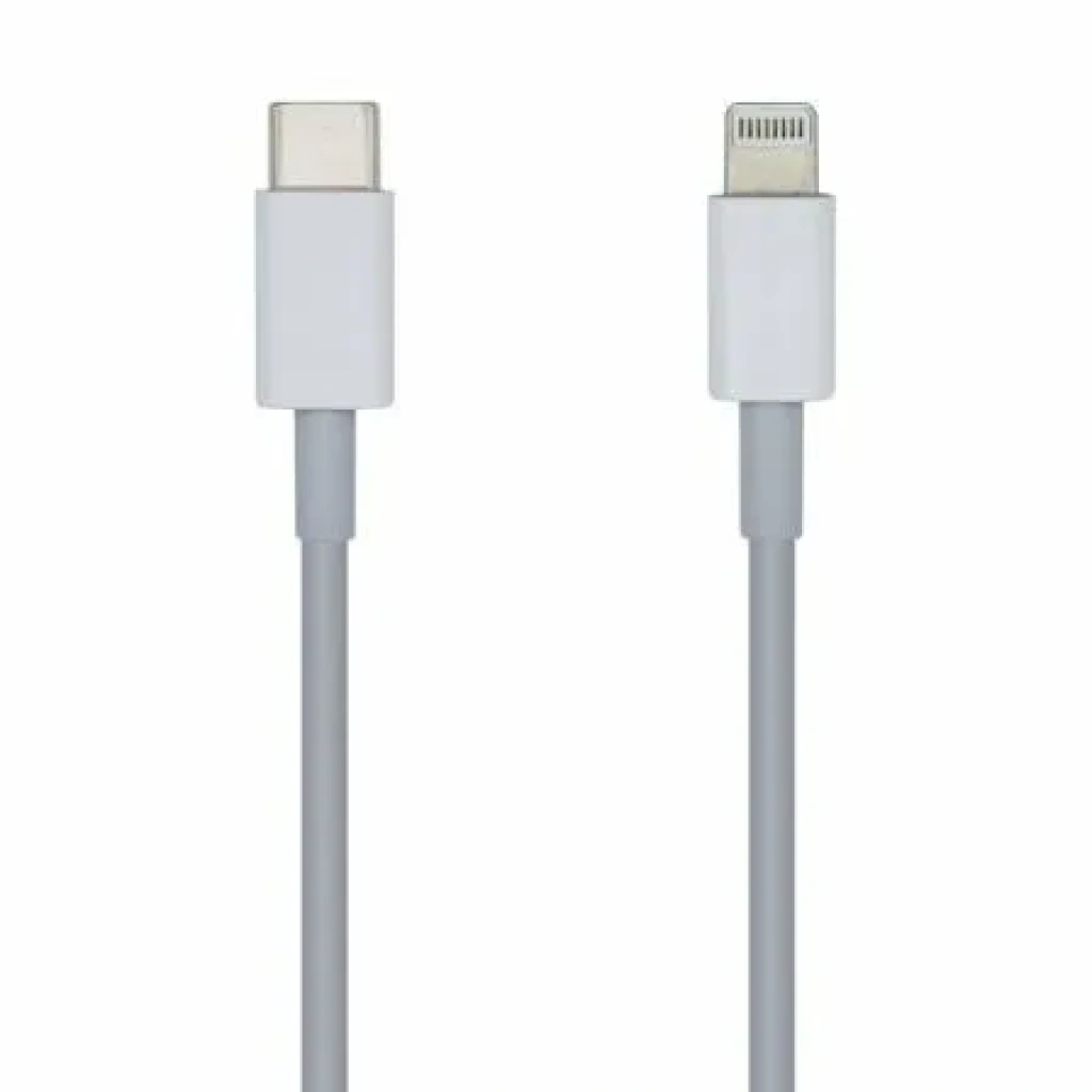 - Cable LIGHTNING con conector LIGHTNING macho en un lado y conector USB-C macho en el otro.