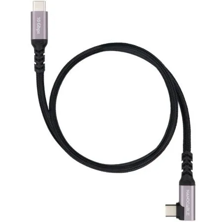 Cable USB-C 3.2 Gen2 10Gbp 100W/5A con conector tipo USB-C macho acodado en un extremo y USB-C macho en el otro.