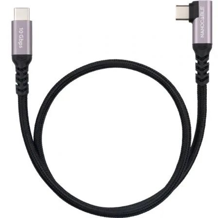 Cable USB-C acodado 3.2 Gen2 10Gbp 100W/5A, 4K/60Hz, USB-C/M-USB-C/M Negro, 0.5 m