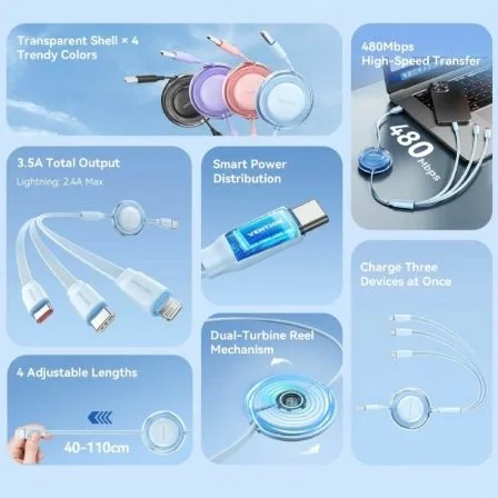 - Nombre: Cable de carga retráctil USB 2.0 3 en 1