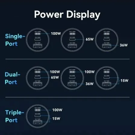 - Salida USB-C1 + USB-C2 + USB-A1: 100W + 15W