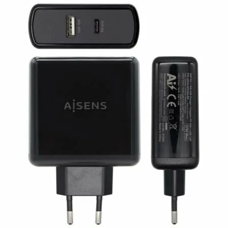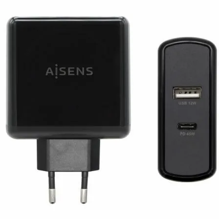 AISENS – CARGADOR 57W, 1xUSB-C PD3.0 45W, 1xUSB-A 5V/2.4A 12W, NEGRO