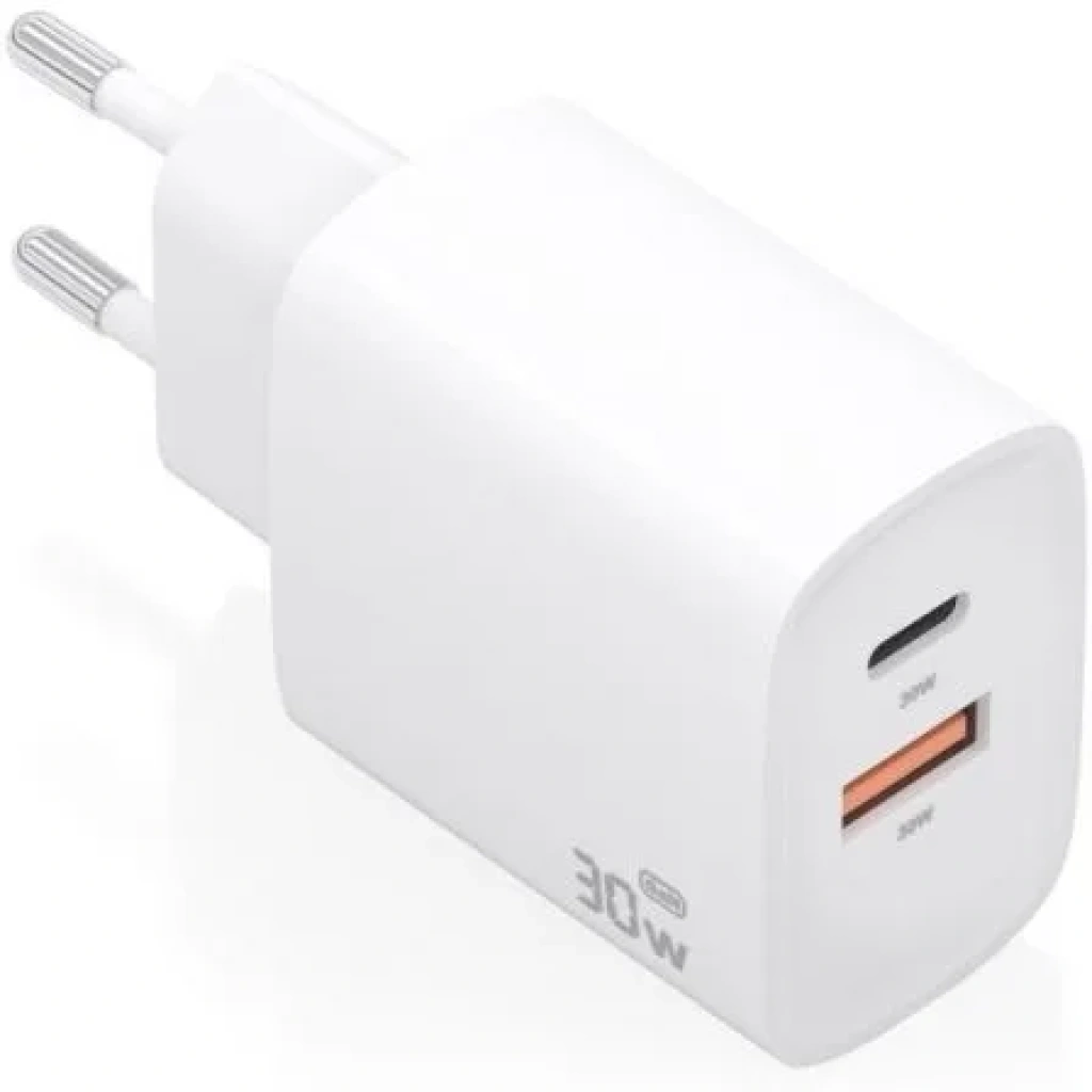 A110-0952 – Cargador GaN 30W, 1xUSB-C PD3.0 QC4.0, 1xUSB-A QC3.0, Blanco