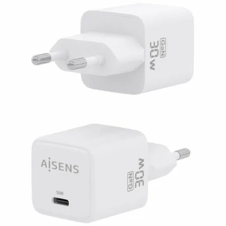AISENS – CARGADOR GaN 30W, 1xUSB-C PD3.0 QC4.0, BLANCO