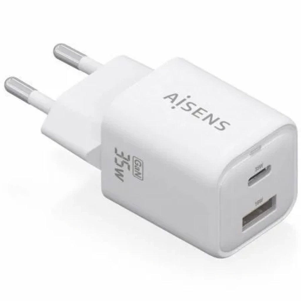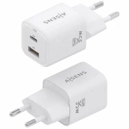 AISENS – CARGADOR GaN 35W, 1xUSB-C PD3.0 QC4.0, 1xUSB-A QC3.0, BLANCO