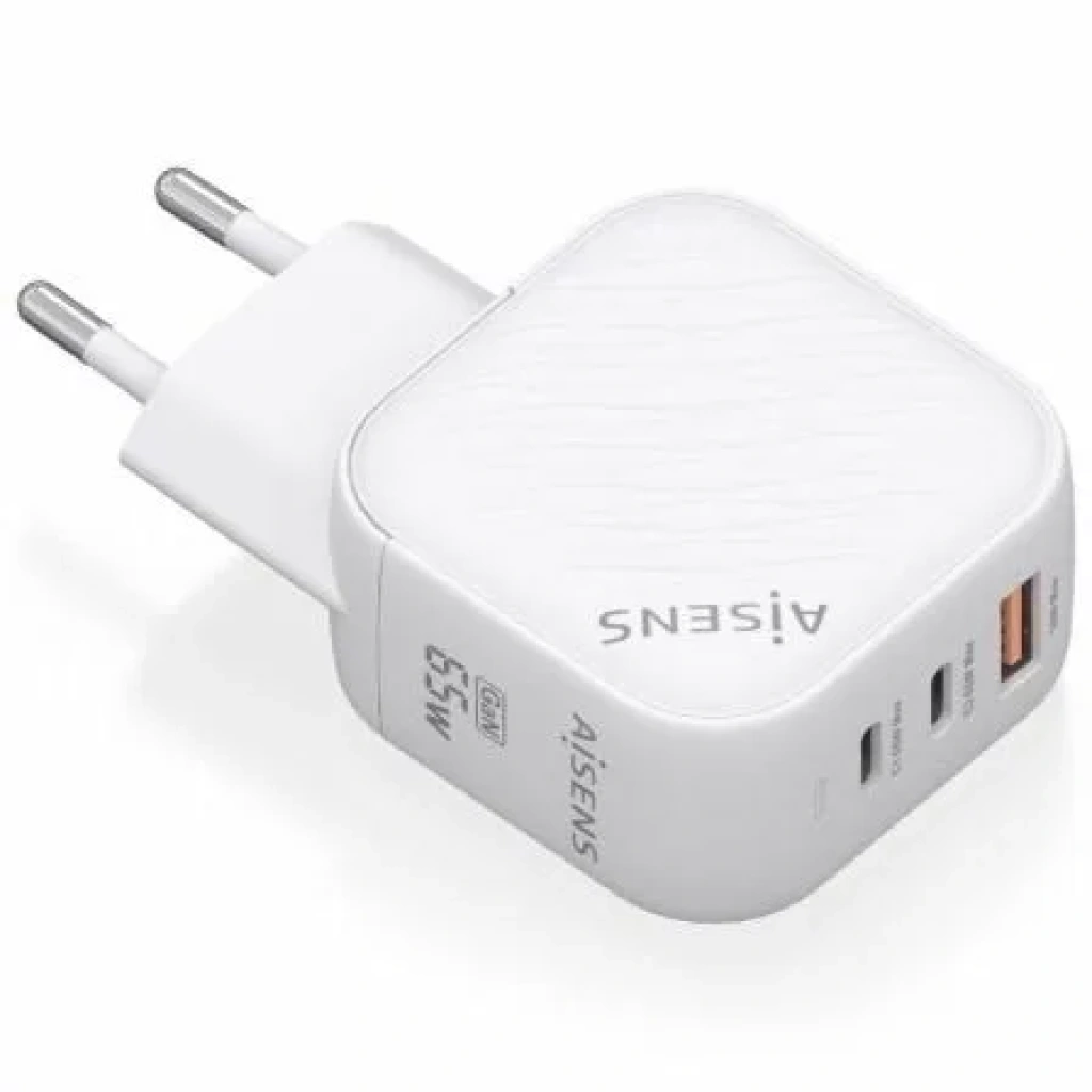AISENS – CARGADOR GaN 65W, 2xUSB-C PD3.0 QC4.0, 1xUSB-A QC3.0, BLANCO