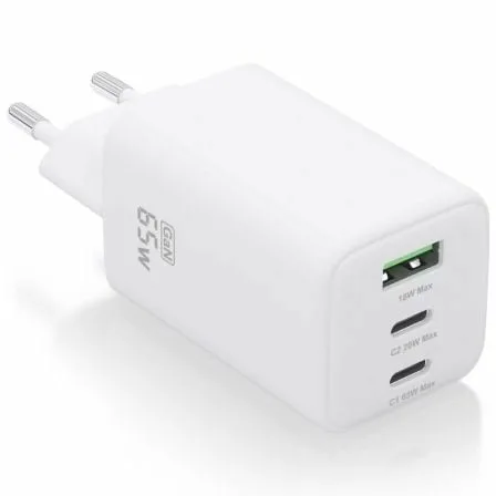 AISENS – CARGADOR GaN 65W, 2xUSB-C PD3.0 QC4.0, 1xUSB-A QC3.0, BLANCO