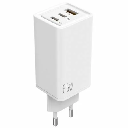 Cargador 65W GaN 2 USB-C PD + 1 USB-A Blanco