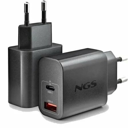 - Cargador GaN de pared con una salida USB-C (PD & PPS) y una salida USB-A QC 3.0 (Quick charge) de hasta 30W de potencia máxima para cargar dispositivos de manera rápida.