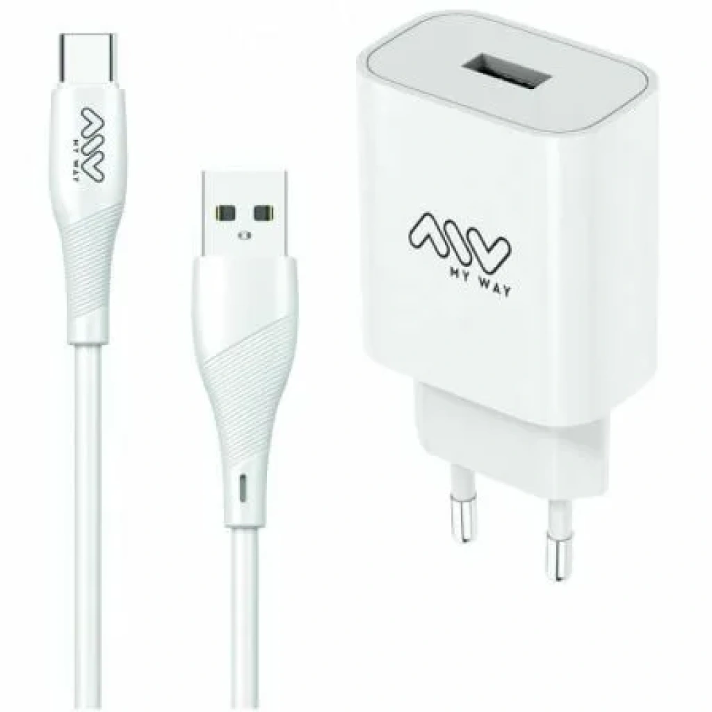 Myway pack cargador de pared USB 15W + cable USB C 1,2m blanco