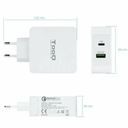 - Tecnología Power Delivery (PD) del puerto USB-C y Quick Charge 3.0 (QC3.0) del puerto USB-A permite carga rápida