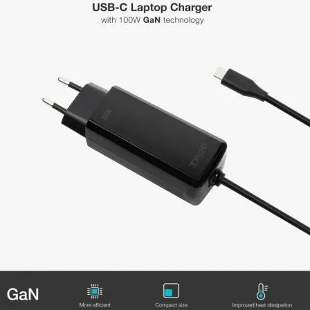 Cargador de portátil GAN USB-C PD 100W, Negro