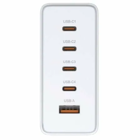 - Cinco puertos USB-C/USB-A: Cuenta con 4 puertos USB-C y 1 puerto USB-A para cargar 5 dispositivos simultáneamente