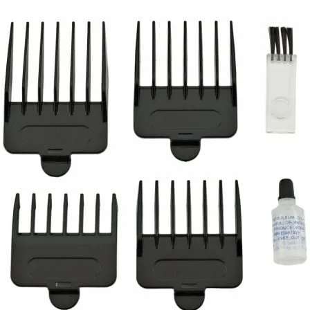 El cabezal de precisión y la longitud de corte variable permiten abordar degradados y remates finos con peines de longitud fija, que se montan y desmontan con un gesto. Para preservar la calidad de corte, el fabricante recomienda aceitar las cuchillas antes, durante y después de cada sesión y retirar los restos con el cepillo de limpieza incluido.