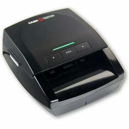 Este detector de billetes falsos Cashtester es el sucesor del CT 332 SD y es más compacto, más rápido y con reconocimiento automático de moneda.