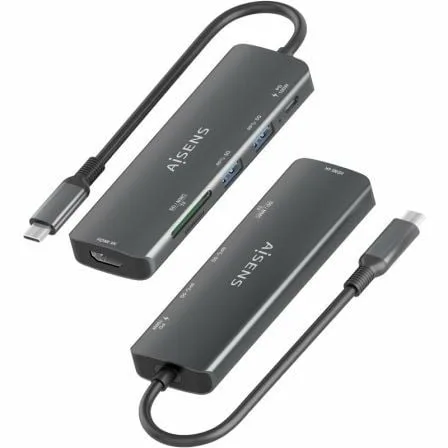AISENS – USB-C DOCK 6 EN 1, USB-C A 1xHDMI, 2xUSB-A, 1xUSB-C PD 100W, 1xSD, 1xMICRO SD, GRIS, 15CM