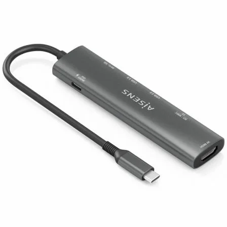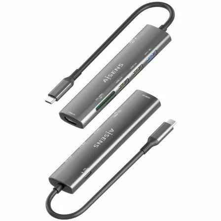 AISENS – USB-C DOCK 7 EN 1, USB-C A 1xHDMI, 2xUSB-A USB2.0, 1xUSB-A USB3.0, 1xUSB-C PD 100W, 1xSD, 1xMICRO SD, GRIS, 15CM