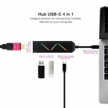 Hub USB-C 4 en 1, Conversor USB-C a 2xUSB-A, USB-C PD, HDMI
