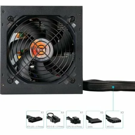 - Conectores: 1 conector ATX (24 pines) – longitud exterior 550 mm, 1 conector CPU (P8 4+4 pines) – longitud exterior 600 mm, 4 conector PCI-E (P8 6+2 pines) – longitud exterior 550+150 mm, 5 conectores SATA y 3 MOLEX – longitud exterior 550+150+150+150 mm