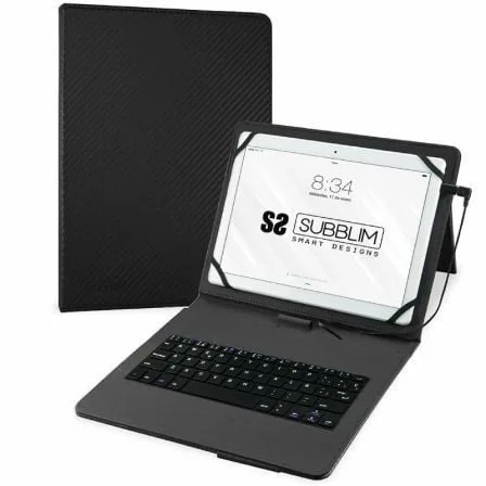 Lleva la informática móvil a otro nivel gracias a este teclado con funda universal para Tablets dotadas del sistema Android. Fija la Tablet de 10.1′ a 11 pulgadas en un ángulo ideal para escribir o visionado de videos y se mantiene firme gracias al sistema de atril magnético que incorpora. Su cubierta duradera con acabado en símil de Fibra de Carbono es resistente a salpicaduras y protege tu Tablet durante el uso diario.