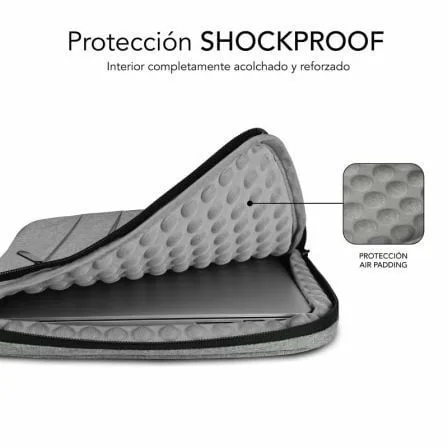 La Funda Air Padding 360 de SUBBLIM es una excelente opción para aquellos que buscan protección total para su ordenador portátil. Cuenta con un departamento exclusivo que incorpora un revestimiento de burbujas acolchadas llamado Air Padding, que brinda una protección excepcional contra golpes y caídas accidentales, incluso cubriendo los bordes y extremos del dispositivo.