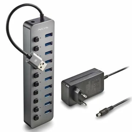 - El hub está diseñado para añadir 10 puertos USB 3.0 a cualquier dispositivo que incluya puerto USB A, utilizando un único puerto USB de entrada