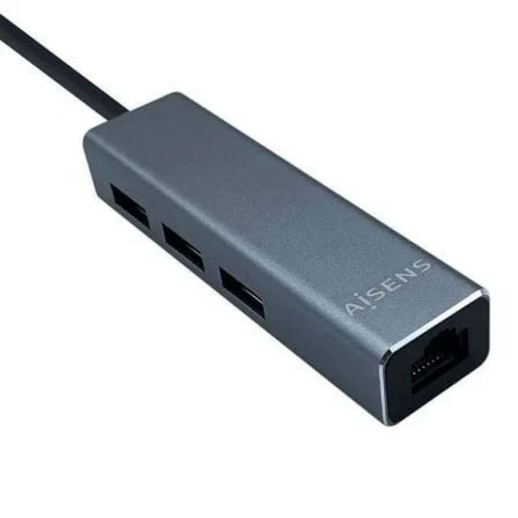 AISENS – CONVERSOR USB3.1 GEN1 USB-C A ETHERNET GIGABIT 10/100/1000 MBPS + HUB 3XUSB3.0, GRIS, 15CM