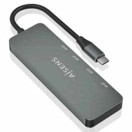 AISENS – Hub USB 3.2 Gen2 10G USB-C, USB-C/M-2xUSB-C/H-2xUSB-A/H, Gris, 15cm