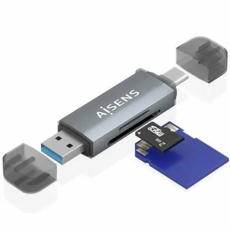 AISENS – LECTOR DE TARJETAS SD, Micro SD, MMC, RS-MMC, MMC Micro, USB-A Y USB-C, GRIS