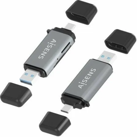 AISENS – LECTOR DE TARJETAS SD, Micro SD, MMC, RS-MMC, MMC Micro, USB-A Y USB-C, GRIS
