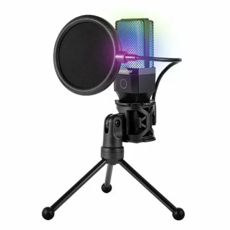 Micrófono de condensador RGB para potenciar tanto la calidad de sonido en tus grabaciones de voz como el estilo en tus transmisiones en vivo. Su diseño elegante y luces LED RGB ofrecen un toque distintivo, mejorando la experiencia auditiva y visual de tu contenido. Destácate con un micrófono que brinda claridad y estilo en cada grabación o transmisión.