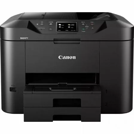 La Canon MAXIFY MB2750 es una impresora multifunción 4 en 1 diseñada para oficinas domésticas y pequeñas empresas que requieren productividad y eficiencia. Con funciones de impresión, copia, escaneo y fax, este equipo ofrece una velocidad de impresión de hasta 24 ipm en monocromo y 15,5 ipm en color. Su capacidad de entrada de papel de 500 hojas y el alimentador automático de documentos (ADF) de 50 hojas permiten manejar grandes volúmenes de trabajo sin interrupciones. Además, cuenta con conectividad Wi-Fi, Ethernet y compatibilidad con servicios en la nube, facilitando la impresión y el escaneo desde dispositivos móviles y plataformas en línea.