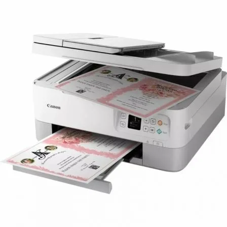 La PIXMA TS7451i de Canon es perfecta para un uso versátil o para trabajar eficazmente en casa: imprime, escanea y copia desde cualquier dispositivo. Muy fácil de conectar y utilizar con la aplicación Canon PRINT, esta impresora multifunción ofrece una impresión móvil óptima. Elegante, asequible y fácil de usar, con la PIXMA TS7451i podrás imprimir en todo tipo de soportes desde tu ordenador, tablet o smartphone: imprime en papel fotográfico, de trasferencia térmica, magnético o adhesivo removible. Con la tecnología ADF, podrás escanear y copiar varias hojas rápidamente, lo que acelera y facilita el trabajo desde casa. Al finalizar el trabajo, la PIXMA TS7451i será lo ingeniosa que tú quieras; perfecta para creaciones con niños, pero también para el niño que hay en ti. Es compatible con PIXMA Print Plan, una suscripción de tintas mensual basada en las páginas impresas.