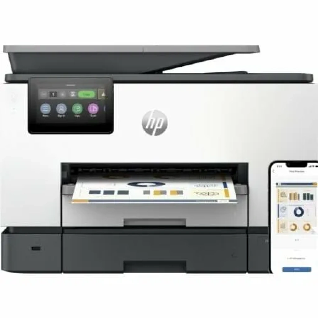 La HP OfficeJet Pro 9130b es una impresora multifunción de inyección de tinta térmica diseñada para entornos de oficina que requieren alta productividad y conectividad avanzada. Con funciones de impresión, copia, escaneo y fax, ofrece una velocidad de impresión de hasta 25 ppm en negro y 19 ppm en color. Su conectividad Wi-Fi de doble banda, Ethernet y USB, junto con su compatibilidad con HP Smart App, permiten una integración sencilla en entornos de trabajo modernos.
