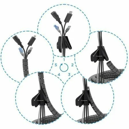 Organizador de cables en espiral con capacidad de hasta 25mm de diámetro.