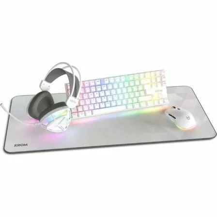 Krom Klass es el primer pack gaming que incorpora un teclado mecánico que se une a nuestro catálogo. Su diseño blanco le hace destacar y lo convierte el pack gamer perfecto para darle un toque distintivo a tu setup. Este combo está formado por un teclado mecánico TKL que incorpora la tecnología anti-ghosting, unos distintivos auriculares estéreo con micrófono integrado, un ratón ergonómico capaz de alcanzar 7200 DPI y una amplia alfombrilla speed. Llena tu setup de estilo con este pack de Krom total white.