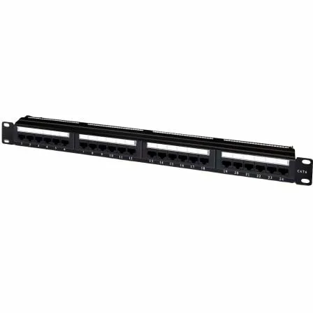 - Panel de parcheo de 24 puertos para conexión RJ45 cat.6 utp.