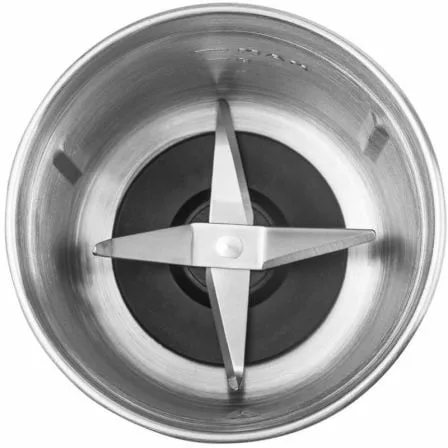 - Dos recipientes extraíbles en acero inoxidable: uno para picar ajo y hierbas frescas, y otro para moler granos de café y especias.