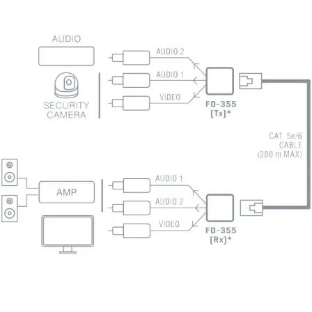 Transmite señal de audio y vídeo a grandes distancias (hasta 200 m), sin necesidad de alimentación, a través de un único cable Cat 5e/6.