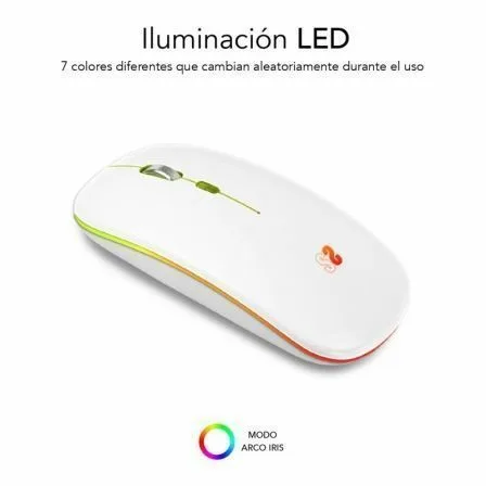 Ratón Óptico Inalámbrico 2.4G y Bluetooth RGB Led Dual Flat Mouse White