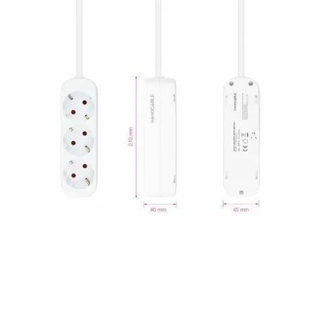 - 1 x Regleta de enchufes con 3 tomas, 1.4 m, Color Blanco