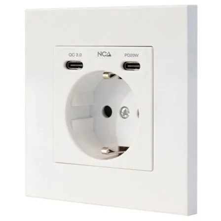 Base de enchufe de pared tipo Schuko con 2 tomas USB-C, QC 3.0 y PD 20W