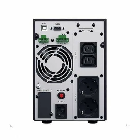 El SAI se diseña con el panel LCD color para que los usuarios supervisen el sistema eléctrico y configuren ajustes fácilmente. Este modelo es compatible con el generador y también adopta el modo ECO para conservar energía. El producto se puede conectar al interruptor de apagado de emergencia (EPO), que permite a los usuarios apagar SAI inmediatamente durante la emergencia. Los ventiladores de velocidad variable proporcionan una gestión térmica automática basada en la carga de potencia para reducir el ruido y proporcionar una mayor comodidad para los usuarios.